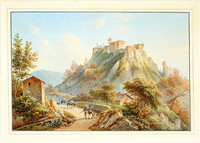 Im Sommer 1811 bereist Lory noch weiter südlich gelegene Orte, wobei ihn sein Weg über Mailand, Venedig, Florenz, Rom und Neapel bis nach Süditalien führt. Aus dieser Zeit sind Ansichten pittoresker italienischer Städte erhalten. So weckt ein Städtchen mit Burgruine an einem Berghang sein Interesse. Auf der Landstrasse im Vordergrund zieht eine vierspännige Reisekutsche vorbei.